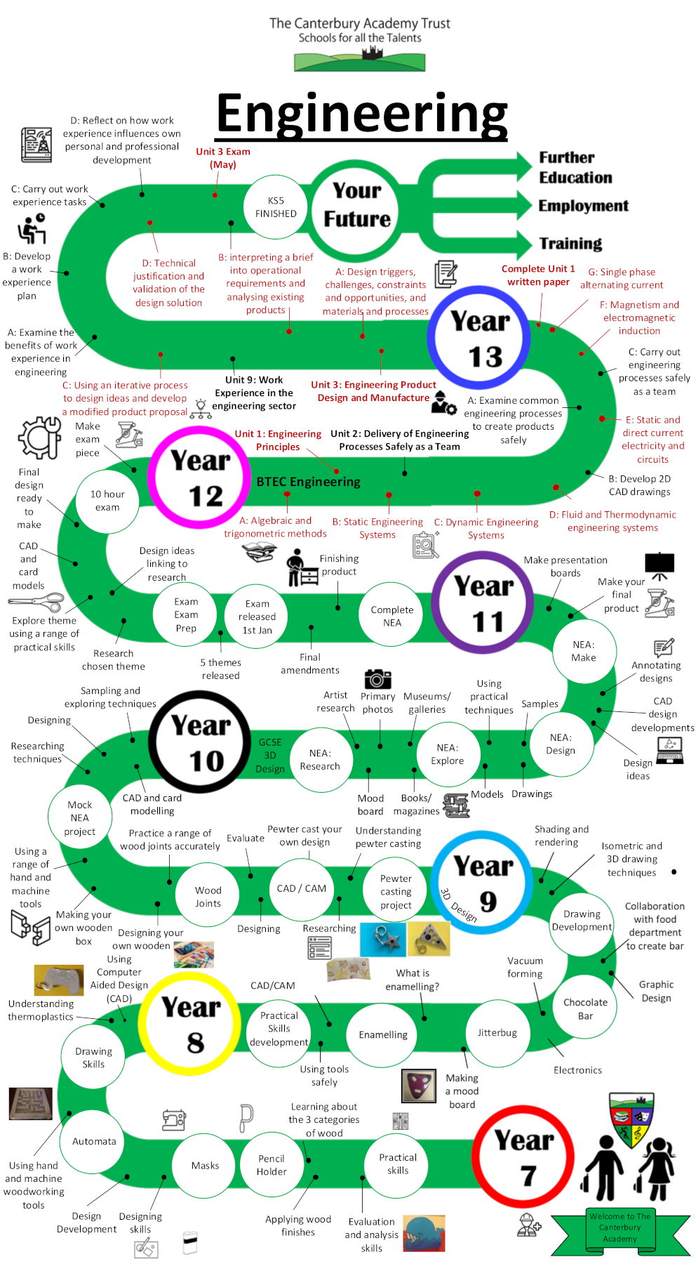 Students are assessed continually through mini-projects and assessment of workbooks and final outcomes. At Key Stages 4 and 5, assessment takes place through coursework and examinations.